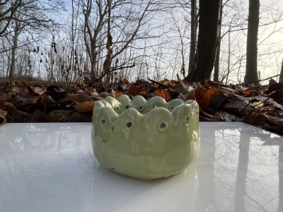 Fin forårsgrøn lille skål som også kan anvendes til fyrfadsstage.