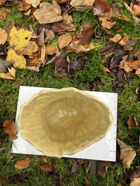 Stor vase med smukke farver på en fin gul bund. God til dine store buketter eller bare rigtig smuk, som den er.
