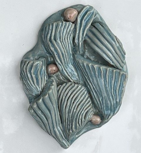 Fint turkist væghæng med lyserøde perler.